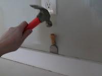 The discovery of the amazing properties of a cheese spreader came when we had left the toolbox in someone's car right after the move into our new house. Our 1950's kitchen came complete with coffee cup wallpaper and original homemade cabinetry in which the shelves had been covered in my arch nemesis, contact paper. For those of you who don't know, contact paper looks like wrapping paper and sticks on to your cabinet shelves making them even dirtier than the shelf would get all by itself with no paper on it.
